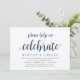 Carte d'invitation moderne rustique avec écriture en bleu marine (avec le titre de la carte: aidez-nous à célébrer). Elle est parfaite pour votre réception d'élopement de mariage / fête de célébration post-mariage. Ajoutez vos détails dans une police / lettrage noir assorti.