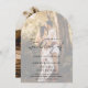 Faire-part de mariage photo moderne avec un design simple avec "le mariage de" dans un style rustique typographie script avec vos détails mariages sur votre photo préférée avec une superposition opaque. Cette élégante invitation à la disposition minimaliste est idéale pour tout type de mariage.