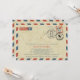 Lettre Airmail Voyage Design pour votre Baby shower. Plan du monde. Deux coeurs rouges sur les emplacements Washington DC USA et France. Les lignes pointillées qui les rassemblent. Le timbre montre les Etats-Unis et la France avec une poussette vintage pour bébé. Si vous avez besoin de différents emplacements ou d'un changement de couleur ou de cartes pour suivre ce thème, envoyez un courriel à paula@labellarue.com