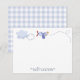This adorable nursery note card features a playful airplane flying through soft clouds with a dotted flight path, creating a sweet aviation themed design. The charming illustration adds a fun and whimsical touch perfect for a baby boy’s nursery. The coordinating blue gingham pattern on the back adds a classic and timeless detail. Ideal for baby thank you notes, nursery correspondence, or personalized baby stationery.