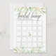 La carte de jeu chic pour la douche nuptiale s'accorde avec notre collection de douche nuptiale Airy Botanical et comporte des bordures de feuillage aquarelle dans des tons pastel de vert. Carte double face vous permet d'obtenir deux jeux en un! Avant propose le Bingo nuptial, avec What's in your Purse. Personnalisez avec la mariée le nom et la date de la douche.