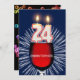 Ajoutez un nom pour customiser cette invitation unique. Une amusante invitation à la fête du 24e anniversaire avec des numéros heureux de bougies brûlant sur un verre de vin rouge. Voir toute la gamme d'invitations et de cartes dans mon magasin.