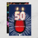 Ajoutez un nom pour customiser cette invitation unique. Une amusante invitation à la fête du 50e anniversaire avec des numéros heureux de bougies brûlant sur un verre de vin rouge. Voir toute la gamme d'invitations et de cartes dans mon magasin.
