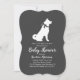 Inclure le grand frère ou la soeur bébé à fourrure dans la célébration avec cet adorable baby shower Akita chien design! Parfait pour un amoureux du chiot avec un bébé en route. L'Akita se trouve à côté d'une adorable calèche vintage. L'arrière - plan gris damier est parfait pour une douche neutre ou co-ed pour les hommes !