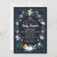 Descendez le trou du lapin pour une célébration magique de baby shower avec cette Alice dans le design de Baby shower de fille de Wonderland. Cet invitation d'Alice in Wonderland présente une couronne feuillue, Alice, le lapin blanc et le Cheshire Cat contre un arrière - plan bleu foncé et rêveur. Ce design est notre vision du livre classique de Lewis Carroll Alice in Wonderland. Vous pouvez customiser cet invitation pour répondre à vos propres besoins.