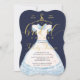 Annoncez votre événement de douche nuptiale avec notre élégante et élégante Alice au pays des merveilles robe bleu nuptiale invitation pour la future mariée. Parfait pour une fête de la douche nuptiale à thème Alice in Wonderland. Le design présente notre robe bleu Wonderland Alice, de style chic, élégant et vintage peint à la main. La robe est accrochée à un cintre de robe en faux or de style vintage orné. Une belle écriture manuscrite style script typographie "Bridal" en faux or. La palette bleu marine, bleu pâle et faux or crée un look tendance, chic et vintage. Le côté noir présente un arrière - plan bleu pâle minimaliste avec un motif à clé vintage qui complète magnifiquement l'illustration avant. Toutes les illustrations contenues dans cette élégante invitation à la douche nuptiale sont des oeuvres originales dessinées à la main par Moodthology. Vous pouvez customiser la taille du texte, la couleur du texte, la police et la mise en page de votre propre préférence de conception personnelle.