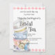 Adorable Alice in Wonderland thème nuptiale douche thé rose invitation à la douche à thé. Le design en diamant rose et blanc sur le dos avec des accents Alice tout autour.