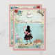 Elégant vintage Alice in Wonderland collage des invitations de mariage. Devant ces élégantes invitations chic et décontractées se trouve une jolie silhouette d'Alice portant un joli flamant rose géant, le chat Cheshire, une théière, une montre de poche dorée glamour, un coeur de tarte à la confiture et le lapin blanc avec sa montre de poche. Le arrière - plan est un beau journal vintage bleu coloré avec des roses bleus, des marguerites blanches et des clés anciennes. Il y a une frontière assez rose avec de minuscules coeurs. Au verso de ces beaux invitations amusants est le même arrière - plan avec une jolie boisson moi bouteille, le coeur de tarte à la confiture, teacup et soucoupe. VEUILLEZ NOTER : Tous les produits sur Zazzle ont des images imprimées à plat. Ces belles invitations sont décorées de part et d'autre. Tout le texte est entièrement personnalisable pour répondre à vos besoins et vous pouvez changer le style de police, la couleur et la taille de la police si vous le souhaitez. Si vous avez besoin d'aide pour customiser votre produit, veuillez me contacter par l'intermédiaire de mon magasin et je serai heureux de vous aider. J'ai des produits correspondants dans mon magasin.