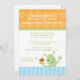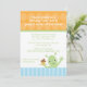 Cette invitation à la fête d'anniversaire pour garçons 5x7 a un dessus de polkadot orange avec un fond rayé bleu. Il y a un mignon alien agitant d'une main et tenant un cupcake de l'autre main. Vous pouvez facilement customiser vos informations de fête. Cocoa Studio com