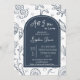 In the center sits a deep blue arch outlined with a clean white line, giving your event details a modern focal point.