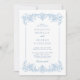 Élégante et intemporelle, cette invitation classique présente une illustration douce d'inspiration victorienne bleu poussiéreuse, idéale pour les couples à la recherche d'un design raffiné et romantique. La typographie serif classique et les accents bleus subtils ajoutent une touche de sophistication à votre grand jour. Donnez le ton de votre journée spéciale avec cette gracieuse invitation qui combine simplicité moderne et charme classique.