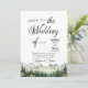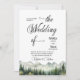 An elegant Wedding Invitation with watercolor mountains and pine trees that you can customize with your details.