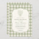 Celebrate your upcoming little one with this all in one gingham floral bow baby shower invitation in soothing sage green. Featuring a charming floral bow design and classic gingham pattern, this invitation includes a convenient QR code for easy access to RSVP details, registry links, directions, or event information. Perfect for a timeless, gender-neutral, or nature-inspired baby shower, this design is fully editable and print-ready.