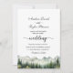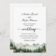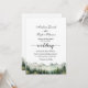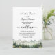 Une élégante invitation de mariage avec des montagnes aquarelles et des pins que vous pouvez customiser avec vos détails.