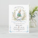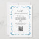 All in One Peter Rabbit Bunny QR Baby Shower Invitation – the perfect whimsical choice for your little one's celebration! This charming design features a classic Beatrix Potter-inspired watercolor Peter Rabbit hopping joyfully in a soft floral wreath of blues, pinks, and fresh greenery, framed by elegant blue ribbon borders for timeless storybook appeal.