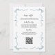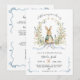 Adorable All in One watercolor baby shower invitation featuring a sweet little bunny rabbit in a charming coat, nestled in a delicate floral wreath with soft blue and pink blooms. "A Little Bunny is on the Way" – perfect for welcoming your baby boy or gender-neutral celebration! Includes space for your custom details: date, time, location, and a handy QR code for easy registry access. Ideal for a whimsical Peter Rabbit-inspired theme or spring/summer shower. Personalize easily and order today for a memorable invite that delights guests!