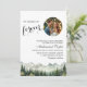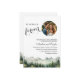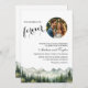 An elegant Wedding Invitation with watercolor mountains and pine trees that you can customize with your details.