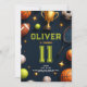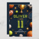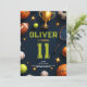 Celebrate your little athlete with this bold all-star sports design featuring a trophy, tennis racket, and game balls on a dark navy background. Perfect for active birthday fun!