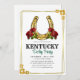 Course moderne Horse Derby Party Equestrian Invitation Modern Horse Race Derby Party Invitation avec une illustration d'un cheval de course avec jockey et motif rayé sur le dos. Tous les éléments de texte peuvent être changés afin que ce design puisse être utilisé pour d'autres événements aussi : faire-part de mariage équestre classe, fête d'anniversaire de cheval, fête de montre de derby, ouverture de grange de cheval et plus encore. Arrière - plan, la couleur de l'illustration et les couleurs du texte peuvent être changés à l'aide de l'outil de conception!