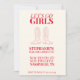 Appelez toutes les épouses-filles à être et à ses pots ! Préparez-vous à lever les talons et à embrasser l'esprit sauvage de Nashville avec notre Bachelorette Invitation "Let's Go Girls"! Cette invitation rouge-chaud capte l'essence de l'énergie vibrante de Nashville et le charme de la campagne, avec des bottes de cowboy rouges audacieuses et sassantes comme pièce maîtresse. Rassemblez vos filles et les invitations pour un bon moment en école de botte à Music City. Avec son design ludique et élégant, cette invitation donne le ton à une soirée bachelorette remplie de rire, de danses et de souvenirs inoubliables. Les bottes de cowboy rouges symbolisent l'esprit d'aventure et évoquent un sentiment de confiance et d'autonomisation. Admirez les images honky-tonk de Nashville pendant que vous fêtez les noces à venir de la future mariée. Que vous soyez dans les célèbres bars honky de Nashville, que vous vous régaliez de cuisine du Sud ou que vous découvriez les monuments emblématiques de la ville, cette invitation promet une expérience de bachelorette inoubliable. Customisez l'invitation avec tous les détails essentiels, de la date, l'heure et l'emplacement à toute demande spéciale ou les codes vestimentaires. C'est une façon parfaite de préparer la scène et de rendre votre équipe de cowgirl enthousiaste pour les festivités sur le thème de Nashville qui attendent. Mettez vos bottes de cowboy rouges, attrapez vos copines, et peignons la ville en rouge à Nashville ! Cette Invitation de Bachelorette "Let's Go Girls" est votre billet pour un bon moment d'amorçage, où des souvenirs sont faits et des amitiés sont célébrés. Yeehaw !