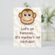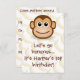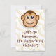 Cette invitation d'anniversaire présente un mignon singe souriant sur un arrière - plan transparent de bananes, avec du texte personnalisable. Le verso de l'invitation présente également une image du singe, ainsi que les bananes et le texte supplémentaire personnalisable. Si vous souhaitez que les bananes soient plus vibrantes, il vous suffit de retirer une des couches transparentes qui les recouvrent.