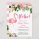Invitation Aloha Luau Baby shower Flamant rose tropical flora
