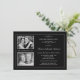 Créez vos propres invitations élégantes pour votre 25e anniversaire de mariage avec deux (2) encarts photo et de beaux accents argentés vintage sur fond noir. Typographie de style lettrepressé formel. Élégant, abordable et personnellement unique pour vous ! Ajoutez vos propres photos "Passé et Présent" et personnalisez le nom, la date et les détails pour votre événement heureux. Peut être facilement personnalisé pour d'autres occasions spéciales et célébrations de jubilé. Parfait pour un souvenir encadré que votre famille chérira à jamais. **REMARQUE : Format adapté pour les petites cartes d'invitation plates. D'autres tailles et styles sont disponibles. © Teri Francis. Timbres assortis et cartes de remerciement disponibles.