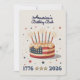 Set the tone for a cheerful, star-spangled celebration with this 5" x 7" invitation featuring a festive patriotic cake, sparkling fireworks, and classic red, white, and blue details. The playful “America’s Birthday Bash” theme gives this design a warm, nostalgic feel that is perfect for summer gatherings, community events, family parties, barbecue celebrations, and birthday-style festivities honoring 250 years of the United States. Ideal for hosts who want a charming Americana look with a fun, welcoming spirit.
