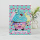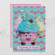 Invitation à l'art illustré fantastique pour gâteau et café ou pour anniversaire - Invitation à des cupcakes drôles, colorés et mignons pour amis et famille. Une créature douce - Art bas et coloré, savoureux et fantaisiste appelé "Cupcakes psychédéliques". En couleurs turquoise, rose, jaune, vert, bleu.