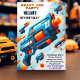Get ready for action! This fun and cool neon-style 9th birthday invitation features Nerf blasters, targets, and bold “Game On” energy in a vibrant watercolor design. Perfect for an ammo-packed, army-inspired party with a retro arcade glow. Customizable text space makes it easy to personalize for your birthday hero!
