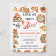 Célébrez le couple heureux avec cette invitation à la douche à pizza "Love at First Slice" amusante et cheesy! Doté d'illustrations aquarelle de pizzas délicieuses, de fromage de goey et d'une police de script ludique, ce design donne le ton d'un rassemblement décontracté et léger. Parfait pour les amateurs de pizza et ceux qui veulent une fête unique et décontractée avant le grand jour !