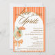 Elégant chic Love At First Spritz Bridal Shower Invitation avec code QR - Doté d'une aquarelle Aperol spritz avec une garniture en tranche orange, ornée d'un arc orange coquette. L'invitation a une preppy, arrière - plan orange rayé et un cadre d'arc. Les mots "Love at first Spritz" sont écrits dans un mélange de calligraphie de script raffiné et de texte de bloc élégant. Modifiez ce modèle d'invitation de douche nuptiale avec vos propres détails d'événement. Cet invitation dispose d'un code QR à l'arrière, ce qui permet à vos invités d'accéder facilement à votre registre des mariages. Également disponible en téléchargement numérique instantané, facilement envoyer par texte, email ou médias sociaux.