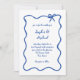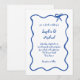 Cette invitation de mariage chic et élégante présente un cadre dessiné à la main et ondulé en bleu marseillais avec un arc, et un script écrit à la main sur un arrière - plan blanc pour un faire-part de mariage de style parisien ou français.