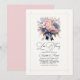 Célébrez dans le style avec cette élégante invitation à dîner répétitif avec un bouquet étonnant de roses rose pastel, d'hydrangées et de lis ornés d'un arc bleu marine sophistiqué. La délicate bordure rose et les gracieuses polices de caractères ajoutent une touche intemporelle, ce qui en fait un endroit idéal pour les fêtes mariages formelles ou romantiques. Entièrement personnalisable pour répondre aux détails de votre événement.