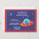 Cette invitation de fête d'anniversaire de garçon 5x7 a un thème de fusée spatiale alien. Il y a un vaisseau spatial alien qui vole dans l'espace extra-atmosphérique, avec des étoiles et des satellites qui flottent tout autour. Vous pouvez facilement customiser ceci avec vos informations de fête au milieu. Graphiques de Blackleaf Studios à MyGrafico