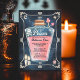 Entrez dans un monde enchanteur à notre Fête d'Halloween Filles Night Out ! Une vintage bouteille en verre de poison, remplie d'un mystérieux élixir rose et d'une parties scintillant chatoyante, est à votre disposition dans notre invitation. Entourée d'un cadre gothique vintage, l'illustration est ornée d'éléments illustrés mystiques comme un oeil mystique, une lune de croissant, des étoiles scintillantes, des bougies brillantes, des feuilles délicats, des champignons roses magiques et un soupçon de danger avec un os croisé et un crâne. L'arrière - plan d'aquarelle bleu foncé prépare le terrain pour une nuit de magie et de méfait, et le script rugueux vintage vous invitation à "Choisir votre poison" pour une fête d'Halloween inoubliable. N'oubliez pas vos costumes, laissez votre style jeter un sort!