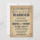 Mangez, buvez et soyez mariés — invitations Vintages au mariage campagnard rustique — parchemins Tourbillonnant, bouclés et typographie occidentale de la vieille mode sur un vieux arrière - plan tourmenté de jeux d'ouest grungy style tourbillon. Ajoutez les noms de mariée et de mariée et les informations mariages dans ce modèle facile à utiliser. La calligraphie élégante, mais amusante et fantaisiste, de type tableau noir rétro peut être modifiée pour votre thème mariage formel ou semi-formel. Le style moderne Décontracté convient parfaitement aux mariages contemporains branchés avec une touche de charme sophistiquée pour les couples traditionnels. Veuillez nous contacter pour obtenir de l'aide sur la personnalisation si vous avez besoin d'espace supplémentaire pour vos détails mariages. D'autres tailles et styles sont disponibles, ainsi que plus d'accessoires et de kit mariage de luxe pour do-it-yourself mariées à un prix abordable.IMPORTANT : Affiché sur 4,5 x 6,25 cartes d'invitation de petite taille.