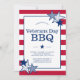 Ce design audacieux, festif et patriotique présente des étoiles bleues et blanches contrastant avec des motifs et un arrière - plan constitué de rayures rouges sur le blanc, dans les couleurs du drapeau américain. Au centre se trouve une zone blanche à bords bleus contenant les mots "Join Us for a Veterans Day BBQ" et le texte personnalisable pour les détails de votre événement dans la typographie populaire. Le motif rouge, blanc et bleu étoiles et rayures est répété sur le dos.