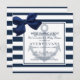 Baby shower nautique avec des rayures blanches et marines avec ancres et un ruban.