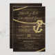 Ancre d'or et brun foncé du bateau lap bois avec le thème "cravate le noeud" faire-part de mariage nautique pour votre croisière, ou les nuptiaux de plage de destination. Une corde d'amarrage dorée recouvre cette invitation avec une ancre audacieuse sur le côté. Une combinaison d'écriture manuscrite et de polices vintages de style anglais ancien ajoutent au charme de ce faire-part de mariage nautique unique.