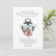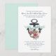 Une ancre nautique et un bouquet de fleurs d'aquarelle bordeaux et roses occupent le centre de cette belle et élégante faire-part de mariage nautique avec du texte bleu marine et une bannière d'aqua molle à couler affichant les noms de la mariée et du marié.
