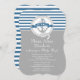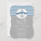 Commencez votre baby shower nautique en bord de mer d'été directement avec nos bateaux contemporains ahoy baby shower invitation. Nos navires élégants et populaires ahoy c'est une invitation à la douche garçon dispose d'une ancre bleue dans un cercle de corde avec une bannière sur une bande bleue et bleue colorée et gris arrière - plan. Parfait pour le baby shower à thème du voilier. Retournez l'invitation pour obtenir une bande bleue et blanche assortie avec une ancre. Disponible dans notre boutique dans d'autres choix de couleurs