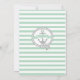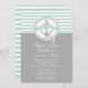 Commencez votre baby shower nautique en bord de mer d'été directement avec nos bateaux contemporains à l'invitation baby shower pour un baby shower neutre pour les femmes. Nos bateaux élégants et populaires accueillent une nouvelle invitation à la douche bébé avec une ancre grise dans un cercle de cordes avec une bannière sur une bande colorée vert clair & gris et arrière - plan gris. Parfait pour le baby shower à thème du voilier. Retournez l'invitation pour une bande verte et blanche assortie avec une ancre. Disponible dans notre boutique dans d'autres choix de couleurs