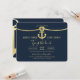 Ancre et noeud de corde nautique bleu marine et or, "Attachez le noeud" annonce de sauvegarde de date de mariage avec photo de fiançailles au verso. La carte pratique de format 4,5 x 5,5 est une façon moderne et élégante d'informer vos invités de mariage de votre mariage à destination, nautique ou de mariage sur un bateau de croisière.