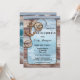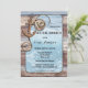 Une invitation à la douche nuptiale moderne et artistique avec des vagues de l'océan encadrées par une ancre, un noeud et du bois rustique.