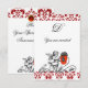INVITATION ANGE DÉCORÉ D'UNE FLEUR ROUGE BRODÉE MONOGRAMME