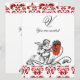 INVITATION ANGE DÉCORÉ D'UNE FLEUR ROUGE BRODÉE MONOGRAMME
