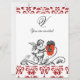 Peinture d'ange vintage noir blanc mignon avec fleurs rouges. Tourbillons élégants, damas rouge avec une pierre précieuse rubis 3D brillante. Ce design artistique et cool est facilement personnalisable avec votre texte et vos initiales pour une cérémonie de mariage, carte d'annonce de nuptial, cartons de table, save-the-date, remerciements, baby showers, bridal showers, sweet 16, fêtes d'anniversaire de quinceanera, showers d'engagement romantique, Noël, vacances, bureau, réunions de famille, célébrations, anniversaires, rassemblements, ou presque n'importe quel événement que vous souhaitez ! Conception numérique par BALDESIGN3D (c).