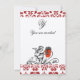 INVITATION ANGE DÉCORÉ D'UNE FLEUR ROUGE BRODÉE MONOGRAMME