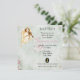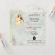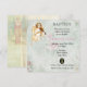 Une invitation pour le baptême d'une fille. Un ange vintage sur un fond texturé de style shabby chic. Une douce image d'un ange jouant du violon avec des fleurs dans les cheveux. Cette image vintage a l'air patinée et décolorée par le temps, et a une tonalité jaunâtre usée. L'arrière-plan est une texture délicate et shabby en blanc grisâtre avec un papier de style vintage.